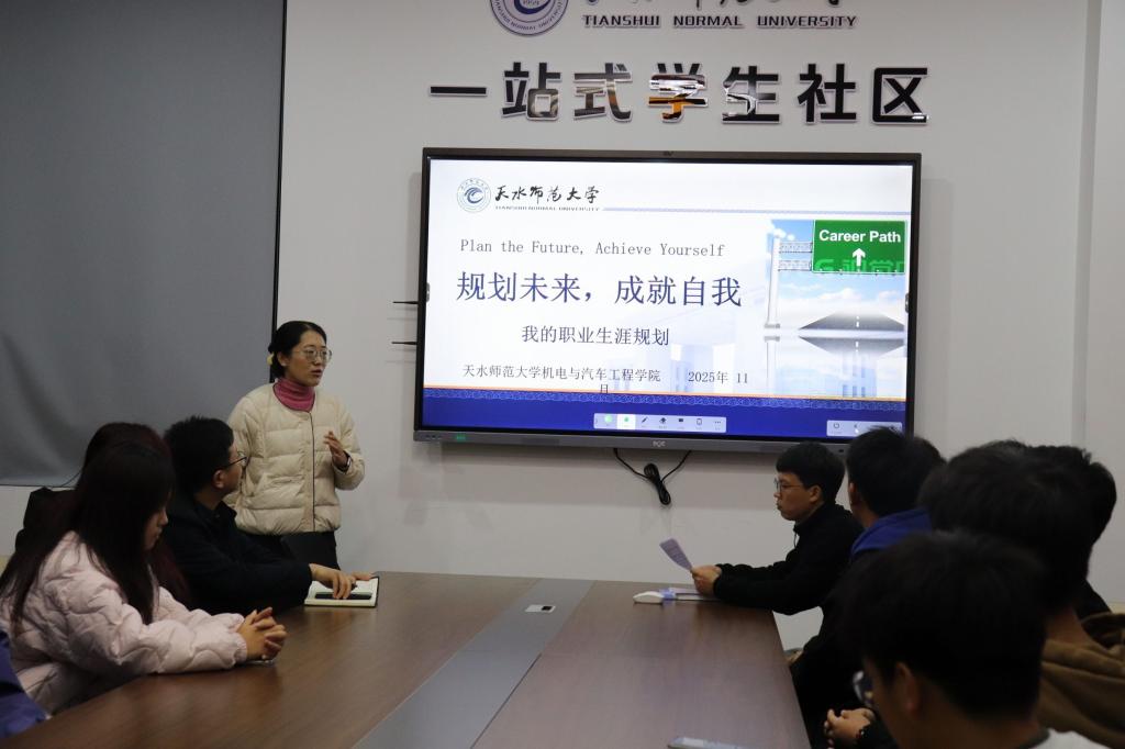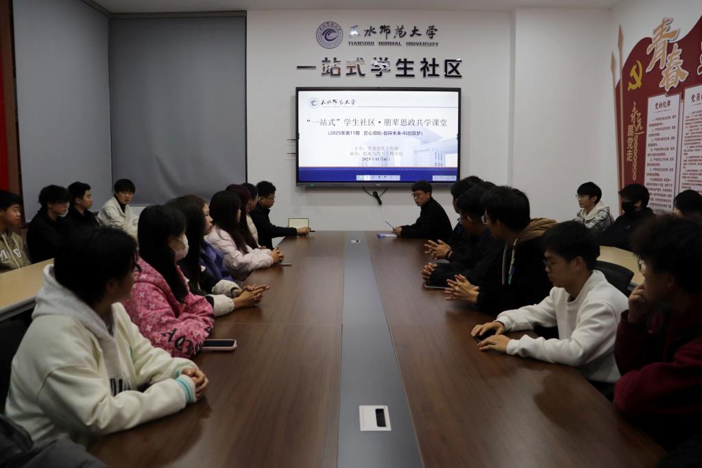 2025年11月6日,天水师范大学机电与汽车工程学院在“一站式”学生社区成功举办朋辈思政共学课堂。本次活动聚焦“教育强国责任担当”“学科竞赛能力提升”“就业创业持续发展”三大核心主题,由张生海、马浩浩、张丽改三位老师带来精彩分享,为同学们在思想引领、竞赛实践与职业发展等方面提供系统指导,助力大家明确目标、拓展视野、提升综合素养。活动吸引了各班团支书、学科竞赛与创新创业爱好者等40余名同学踊跃参与,现场交流热烈,同学们均感受益匪浅。